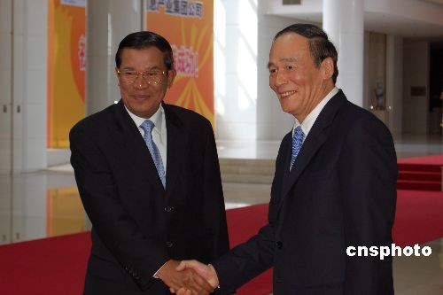 中國國務(wù)院副總理王岐山在廣西南寧會見了柬埔寨首相洪森一行。