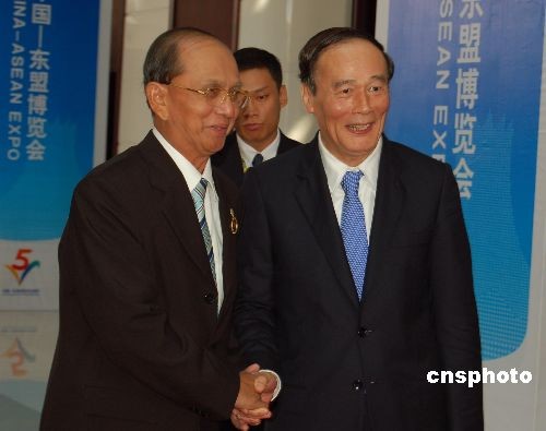中國國務(wù)院副總理王岐山在廣西南寧會見了緬甸總理登盛一行。