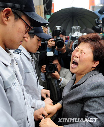10月23日,韓國首爾某旅館縱火行兇案遇難者家屬在案發(fā)現(xiàn)場外悲痛不已。新華社/韓國紐西斯通訊社