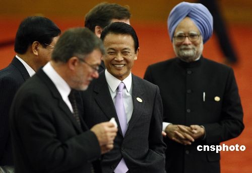 日本首相麻生太郎出席會(huì)議。中新社發(fā) 盛佳鵬 攝