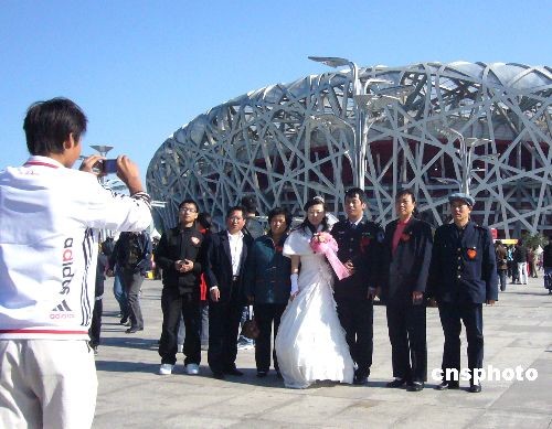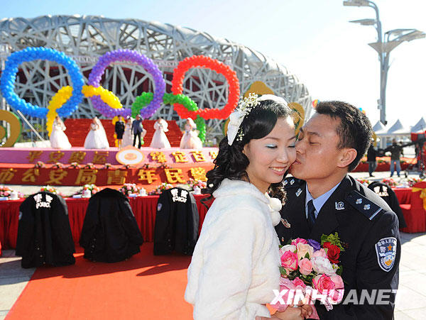 10月26日,一對(duì)新人在交換信物后幸福擁吻。 新華社記者羅曉光 攝(圖片來(lái)源:新華網(wǎng))
