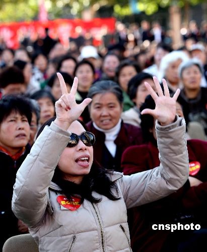 十月二十七日,北京怡海社區(qū)一位居民出資八千元買下拍賣的名人字畫,拍賣所得款項(xiàng)用于援建在地震中毀滅的北川中學(xué)。中新社發(fā) 史利 攝