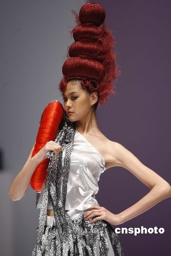 11月10日,一場(chǎng)被命名為“優(yōu)雅時(shí)尚的英倫風(fēng)暴”主題的發(fā)布會(huì)在中國(guó)國(guó)際時(shí)裝周上推出。讓觀眾不只是欣賞到服裝的絢麗動(dòng)人,彩妝的美麗也是一樣的奪人心弦此次發(fā)布會(huì)更是凸顯這一特點(diǎn)。宛如詭異絢爛的愛麗絲夢(mèng)境,造型在天真甜美中進(jìn)行夸張怪誕的演繹。中新社發(fā) 盛佳鵬 攝