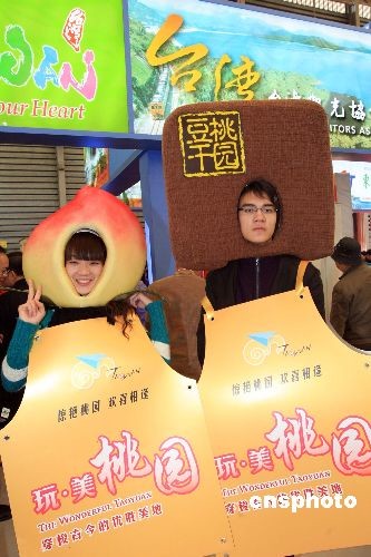 圖:臺(tái)灣桃園交易會(huì)上推廣"豆干""水蜜桃"