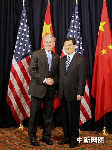 圖:胡錦濤同美國(guó)總統(tǒng)布什舉行會(huì)晤