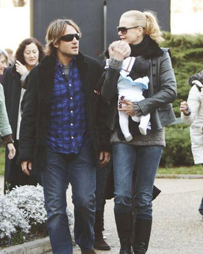 組圖:妮可扁嘴逗愛女 一家三口幸福出游