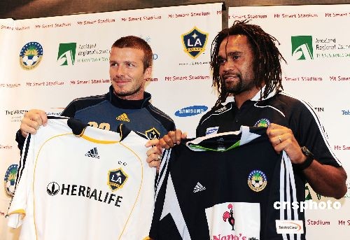 新西蘭時(shí)間12月4日上午10時(shí),在奧克蘭Westin酒店舉行了“洛杉磯銀河隊(duì)奧克蘭之旅”記者會(huì)。在記者會(huì)上,銀河隊(duì)與太平洋明星隊(duì)代表交換了隊(duì)服。 中新社發(fā) 胡旭君 攝