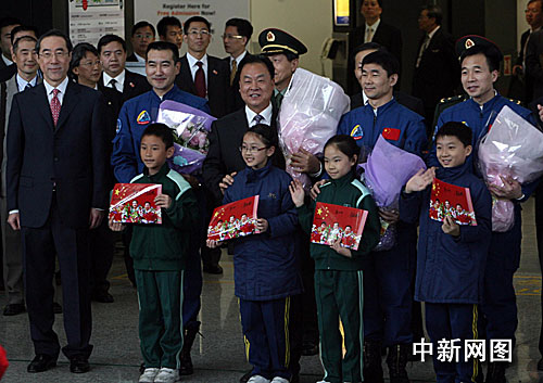 十二月五日,“神舟七號(hào)”載人航天飛行代表團(tuán)抵達(dá)香港國(guó)際機(jī)場(chǎng),展開(kāi)為期四天的訪港行程。四十多人的代表團(tuán)包括團(tuán)長(zhǎng)張建啟、航天員翟志剛、劉伯明和景海鵬,以及負(fù)責(zé)這次載人航天工程的各主要系統(tǒng)指揮或設(shè)計(jì)師。