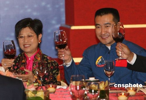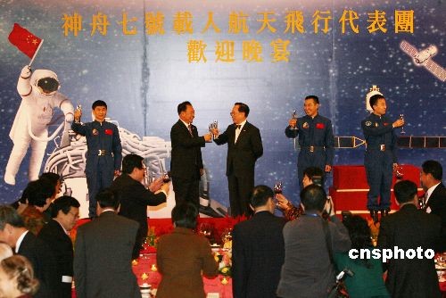 十二月五日晚,香港特區(qū)政府在香港會議展覽中心舉行晚宴,歡迎“神舟七號”載人航天飛行代表團(tuán)一行。中新社發(fā) 武仲林 攝