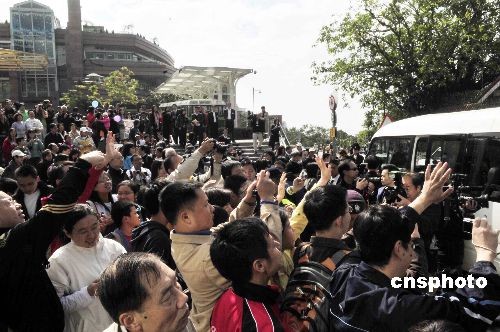 三位“神舟七號(hào)”航天員早上到香港太平山頂參觀,吸引大批有市民一睹航天員風(fēng)采。中新社發(fā) 譚達(dá)明 攝