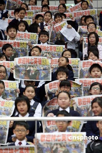 圖為澳門學子熱切等待航天勇士的到來。