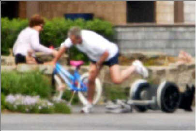 布什從電動(dòng)滑板車上摔倒。