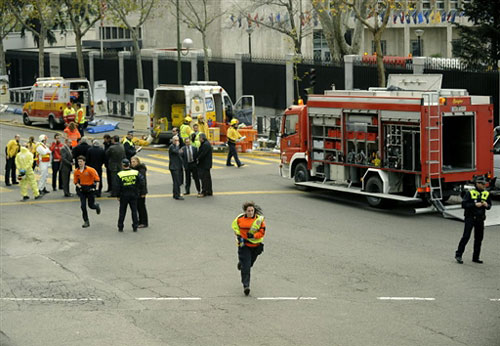 美國駐西班牙的大使館當(dāng)天收到了用信封裝著的可疑白色粉末,西班牙特勤小組立刻包圍了使館,不過事后發(fā)現(xiàn)那些粉末并不會對人造成傷害。