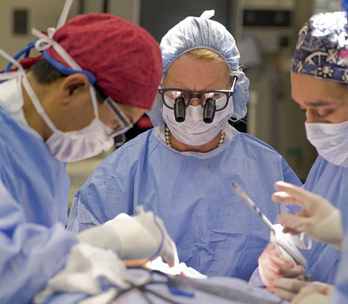 瑪利亞·西蒙諾(中)與其他幾名克利夫蘭診所的外科醫(yī)生在實(shí)施“換臉”手術(shù)。