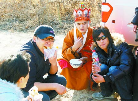 黃河邊上,唐僧討水遭拒。因資金短缺,外景拍攝只能喝水吃餅