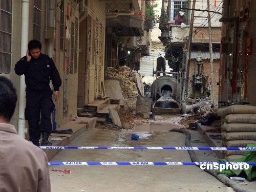 12月19日下午4時15分,廣州市白云區(qū)夏茅村沙園坊因路面塌陷導(dǎo)致兩棟房屋下沉6米,其中一棟倒塌,周圍10余棟房屋傾斜或出現(xiàn)裂縫。目前,有關(guān)部門對以事故現(xiàn)場為中心、周圍約100米為半徑的區(qū)域進(jìn)行封鎖,1000多名居民被疏散出來。中新社發(fā) 劉君鳳 劉蛟 攝