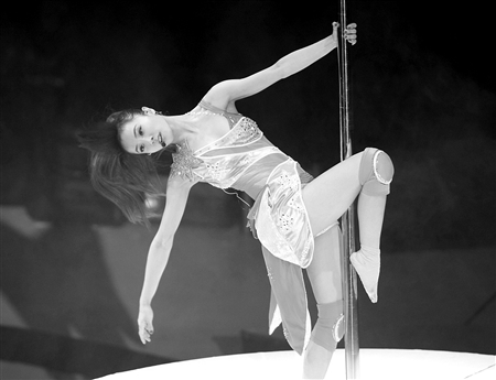 當然,最猛的還是“舞娘”蔡依林“七十二變”的舞臺功夫。劈腿、倒掛、直立一字馬、無重力旋轉(zhuǎn),體操、瑜珈、彩帶舞、鋼管舞、芭蕾舞、機械舞、踢踏舞……爭分奪秒的勁歌熱舞看得觀眾應接不暇!锻婷馈、《招牌動作》等快歌中,蔡依林聳肩、扭腰、甩胯,盡顯性感,《一個人》、《檸檬草的味道》等傷感情歌中,她又表情憔悴,惹人憐惜。當穿皮衣、面無表情的男舞伴登場,一陣犬吠聲中,蔡依林最魅惑的武器“鋼管舞”出臺了——匍匐、旋轉(zhuǎn)、騰空飛躍、蜿蜒纏繞、無聲扭轉(zhuǎn),最后一個高難度動作“正手握桿360度接反手握”更是驚起了現(xiàn)場一片驚呼聲!而《看我七十二變》、《日不落》、《愛情36計》、《倒帶》等蔡氏經(jīng)典歌曲都不斷引起現(xiàn)場高聲大合唱,剛剛嫁入華納的蔡依林興致高昂,她還“打廣告”告訴成都觀眾自己除了一張英文專輯《愛的練習曲》外,幾乎兩年未發(fā)新專輯,但很快一張全新專輯就會推出。