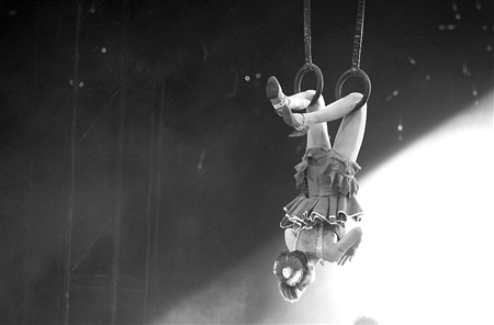 20日晚的成都寒氣逼人,四川省體育館內(nèi)卻是一番沸騰景象,蔡依林“唯舞獨尊成都演唱會”在此熱辣舉行。歌壇小天后在成都展示的花樣百出的舞臺功夫,讓人嘆為觀止——開場就是吊環(huán),只見白幔緩緩落下,吊環(huán)上的蔡依林以藍色性感舞娘裝扮亮相,吊在離地足有兩米多的吊環(huán)上玩男子體操的高難度動作,身下好幾個男護衛(wèi)嚴陣以待注意她的安全。記者身邊的觀眾不斷發(fā)出驚呼以及“她是不是在玩命”之類的議論。蔡依林的全套舞功展示,的確讓她的成都個唱在眾多巨星中顯得獨一無二。