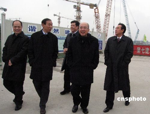 12月21日,正在上海參加第四屆兩岸經(jīng)貿(mào)文化論壇的中國國民黨主席吳伯雄,在海協(xié)會(huì)會(huì)長陳云林等人的陪同下,參觀了上海虹橋綜合交通樞紐工地,了解工程進(jìn)度。中新社發(fā) 許曉青 攝