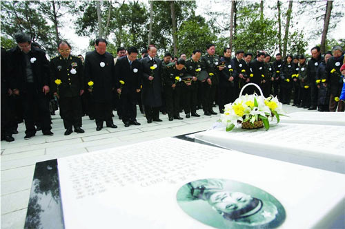 毛岸青、邵華同志骨灰安放儀式,社會(huì)各界人士在墓前表達(dá)敬意和哀思。石禎專 攝