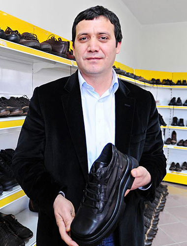 12月22日,在土耳其伊斯坦布爾,巴伊丹制鞋廠老板拉馬贊·巴伊丹展示自己鞋廠生產(chǎn)的一款皮鞋。
