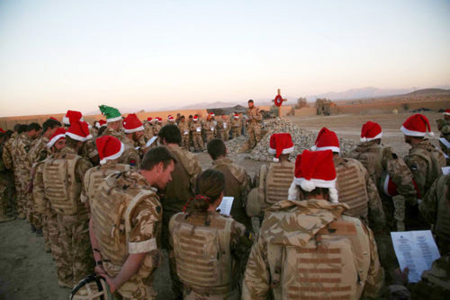 阿富汗哈爾門德省的黃昏,落日掛在灸烤了一天的大地上。英國海軍陸戰(zhàn)隊(duì)的士兵們戴著圣誕帽,集結(jié)在戰(zhàn)爭紀(jì)念碑前,唱起圣誕節(jié)頌歌。