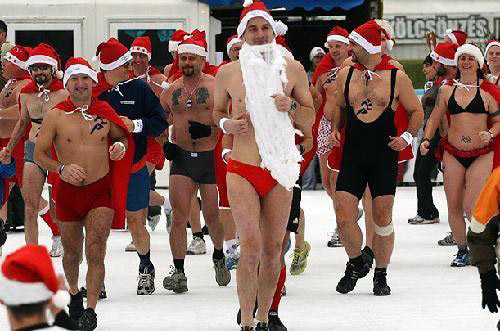 在匈牙利,圣誕老人玩起裸奔賽跑。
