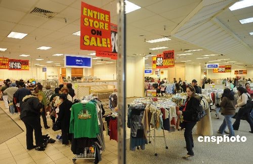 當?shù)貢r間十二月二十七日,洛杉磯附近的一家Mervyns百貨店進入破產(chǎn)關(guān)門前的最后一天大甩賣,全場商品一律一折甩賣,連貨架也在甩賣之列,眾多消費者前來撿便宜。受美國經(jīng)濟衰退的影響,擁有五十九年歷史的美國老牌連鎖百貨公司Mervyns今年夏天宣布破產(chǎn)倒閉,由于沒有找到接手的公司,最終該公司宣布旗下一百四十九家商店進行清貨銷售,然后關(guān)門停業(yè)。中新社發(fā) 張煒 攝