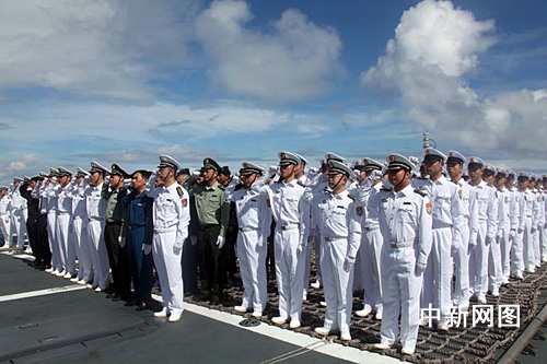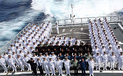 中新網(wǎng)“?凇迸12月28日電(記者 孫自法)12月28日上午,南中國海當(dāng)天艷陽高照、海風(fēng)吹拂,中國海軍護(hù)航艦艇編隊(duì)護(hù)航官兵列隊(duì)甲板,隆重舉行“走向大洋”宣誓儀式。