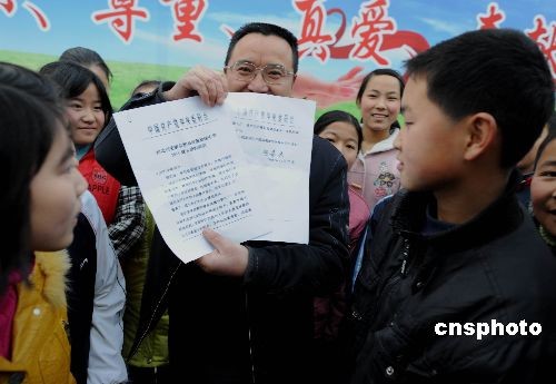 吳天春校長和同學(xué)們兩天前受到胡總書記的看望,一位羌族女學(xué)生向臨告別時(shí)的總書記送上一封信和學(xué)校震后重建規(guī)劃圖的賀年片,兩天后就收到從成都轉(zhuǎn)來總書記的回信。