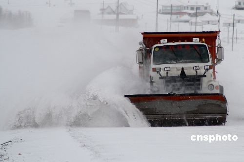新疆哈密一輛道路清障車在清除道路積雪。 中新社發(fā) 蔡增樂 攝