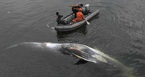 圖:菲律賓海岸警衛(wèi)隊撈起鯨魚尸體