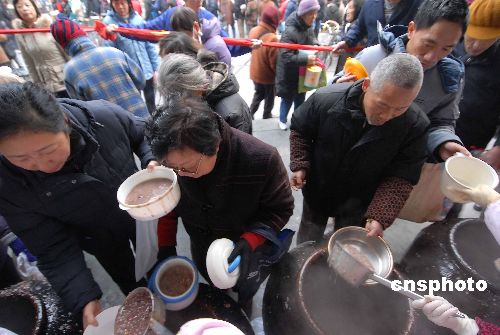 1月3日是臘八,杭州的一些老字號藥館、寺廟及社區(qū)免費(fèi)向市民派送臘八粥。當(dāng)天“杭城盡飄臘八粥香”。今年老字號藥館張同泰特別采用新鮮鐵皮石斛汁熬制臘八粥,還放上了珍貴的鐵皮石斛花。除了祈求來年日子過得紅紅火火、增福增壽外,還希望大家擁有健康的身體和愉快的心情。中新社發(fā) 引煒 攝