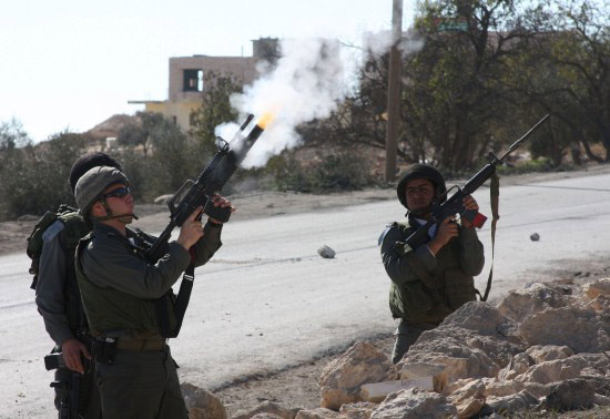 以色列士兵向參加抗議的巴勒斯坦人發(fā)射催淚彈