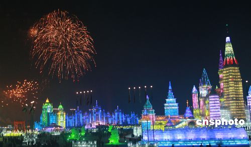 2009年1月5日,由國(guó)家旅游局、黑龍江省人民政府、哈爾濱市人民政府主辦的第25屆中國(guó)·哈爾濱國(guó)際冰雪節(jié)在哈爾濱舉行開(kāi)幕式。本屆冰雪節(jié)以“激情大冬會(huì)、快樂(lè)冰雪游”為主題,包括冰雪藝術(shù)、冰雪體育、冰雪文化、冰雪經(jīng)貿(mào)、冰雪旅游等百余項(xiàng)相關(guān)活動(dòng)。中新社發(fā) 王忠言 攝