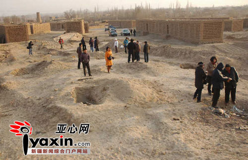 新疆考古所研究工作人員和鄯善縣旅游文物局工作人員對墓葬現(xiàn)場進(jìn)行初步勘察。