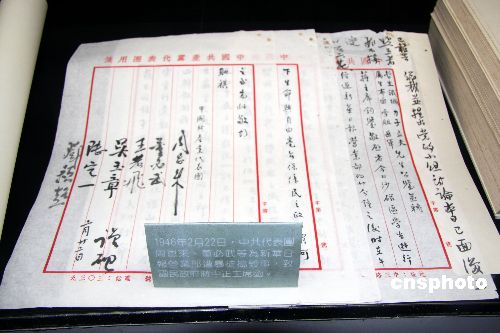 1月7日,中國國民黨中央黨部黨史展覽廳在此間推出“跨越三世紀(jì)——中國國民黨的變與不變”展覽,展出許多珍貴史料,包括周恩來的手稿。圖為1946年,周恩來為新華日報(bào)營業(yè)部遭搗毀事,致函當(dāng)時(shí)的國民政府主席蔣介石的手稿。中新社發(fā) 陳立宇 攝