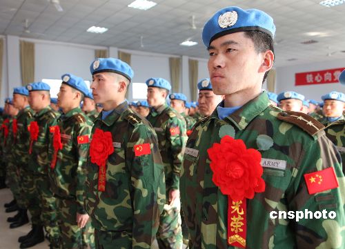 1月8日上午, 濟(jì)南軍區(qū)第二批赴蘇丹達(dá)爾富爾維和工程兵大隊(duì)出征誓師大會(huì)在某裝甲師舉行,300多名官兵將在8個(gè)月的維和行動(dòng)中展現(xiàn)中國(guó)軍隊(duì)的良好形象。中新社發(fā) 畢華明 攝