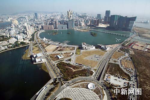 圖為旅游塔上俯瞰下的澳門分外美麗。武仲林 攝