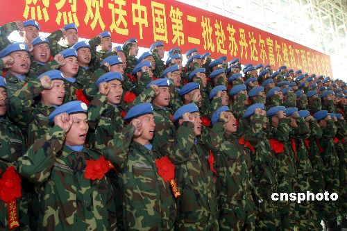 2009年1月10日,在濟(jì)南國際機(jī)場,有關(guān)部門為中國第二批赴蘇丹達(dá)爾富爾維和工程兵大隊第一梯隊153名官兵舉行了歡送儀式。據(jù)悉,此次擔(dān)任維和任務(wù)的官兵主要來自濟(jì)南軍區(qū)和北京軍區(qū),他們將擔(dān)負(fù)修建和維護(hù)道路、橋梁、建筑物、停機(jī)坪和防御工事,勘察水源、鉆井、修建取水輔助設(shè)施等工程保障任務(wù)。