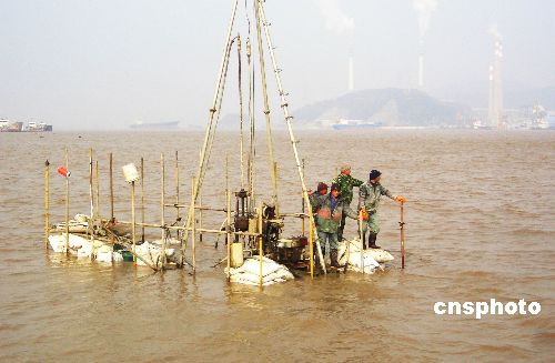 1月12日9時30分許,4名大橋施工員在浙江省臺州市海門港椒江二橋建設(shè)工地上測量時,被上漲的潮水困在港內(nèi)工地上。接到報警后,臺州邊防支隊迅速派遣公邊艇前往營救,經(jīng)過近1個時努力,4人終于成功脫險。中新社發(fā) 郟策 攝