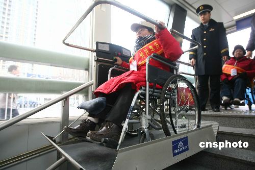 1月16日是北京市第七個無障礙推動日。北京市殘聯(lián)、老齡辦、婦聯(lián)和東城區(qū)殘聯(lián)聯(lián)合組織殘疾人志愿者在東直門交通樞紐現(xiàn)場,體驗無障礙出租車及機場快軌無障礙設(shè)施帶來的方便與快捷。