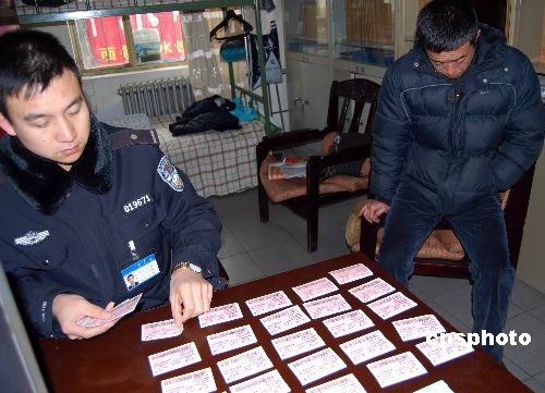 春節(jié)前夕,北京警方開展為期10天的打擊春運(yùn)倒賣火車票專項(xiàng)行動(dòng),以遏制轄區(qū)內(nèi)倒賣火車票的違法活動(dòng),并封堵和刪除互聯(lián)網(wǎng)上發(fā)布的各類倒票信息。中新社發(fā) 歐陽(yáng)文 攝