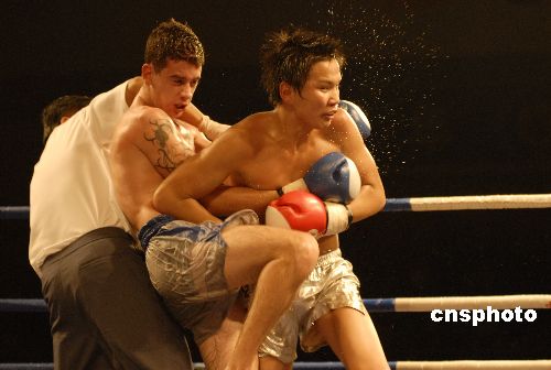 大型國(guó)際賽事 “泰拳中國(guó)行” — 世界職業(yè)泰拳拳王爭(zhēng)霸賽中國(guó)首戰(zhàn)十七日晚間在云南省紅河州打響,來(lái)自十二個(gè)國(guó)家的十六位的職業(yè)泰拳手為中國(guó)觀眾獻(xiàn)上了一道豐盛的泰拳饕餮大餐。比賽開(kāi)始前,泰國(guó)最著名的五位古泰拳拳師為中國(guó)觀眾表演了古泰拳,作為泰國(guó)古泰拳代表人物托尼賈的師弟,五位拳師的表演讓現(xiàn)場(chǎng)觀眾有種看電影的感覺(jué),許多精彩絕倫的武術(shù)動(dòng)作讓大家連呼過(guò)癮。