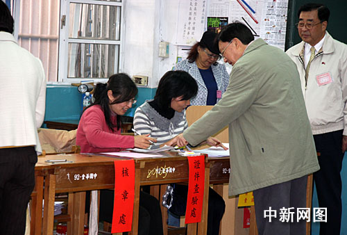 1月18日上午,備受全臺和外界關(guān)注的消費券開始在臺灣各發(fā)放所發(fā)放。圖為今天上午11時,臺灣行政部門負責人劉兆玄來到設(shè)于臺北市金華中學的消費券發(fā)放所領(lǐng)取消費券。陳立宇 攝