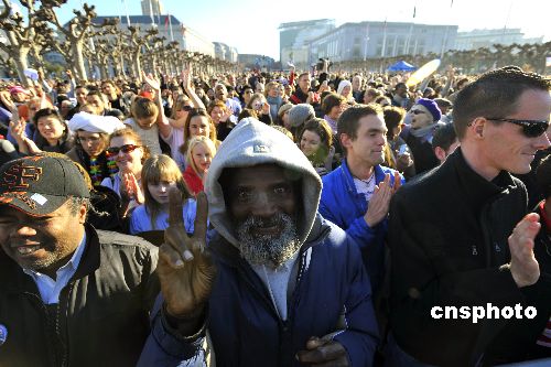 圖:舊金山民眾歡慶奧巴馬就任美國(guó)44任總統(tǒng)