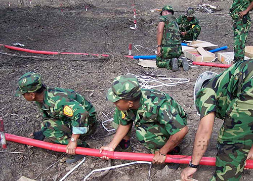 掃雷爆破筒是我軍在中越邊境大掃雷中研制而成并逐漸改進(jìn)后的裝備。其研制者當(dāng)時(shí)受竹子的啟發(fā),提出了研制“掃雷爆破筒”的創(chuàng)意:先打通竹關(guān)節(jié),將炸藥灌進(jìn)竹筒,縱向伸進(jìn)雷區(qū)引爆地雷。經(jīng)某工兵團(tuán)在國(guó)外多次掃雷實(shí)踐證明,使用其進(jìn)行爆破掃雷,進(jìn)度比傳統(tǒng)爆破手段提高數(shù)倍。
