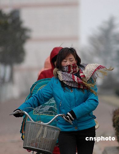 2009年1月22日,山東省日照市迎來一股強(qiáng)冷空氣,新市區(qū)陣風(fēng)8級,平均風(fēng)力5級,氣溫驟降。中新社發(fā) 陳為峰 攝