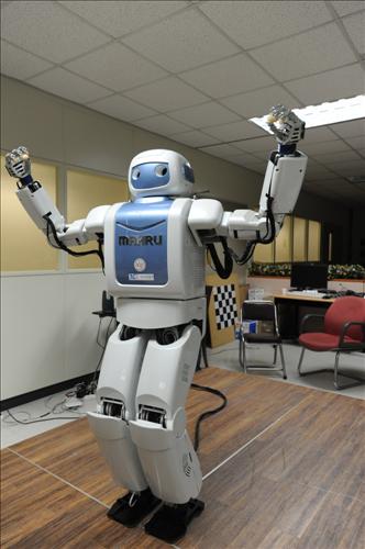 會跳舞的機(jī)器人:韓國科學(xué)技術(shù)研究院機(jī)器人研究小組劉凡材博士開發(fā)的機(jī)器人“MARU”,可同時轉(zhuǎn)動上下肢,隨著音樂節(jié)奏跳舞。