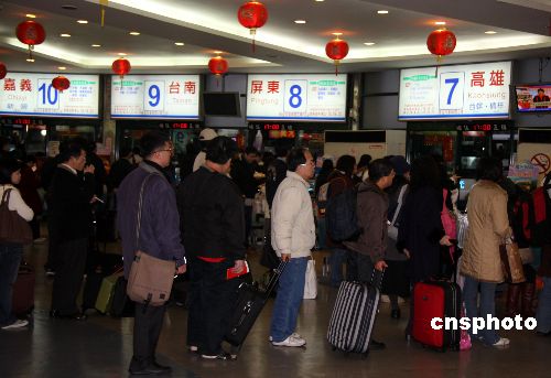 圖:臺北長途汽車客運站出現(xiàn)排隊等車回鄉(xiāng)人龍